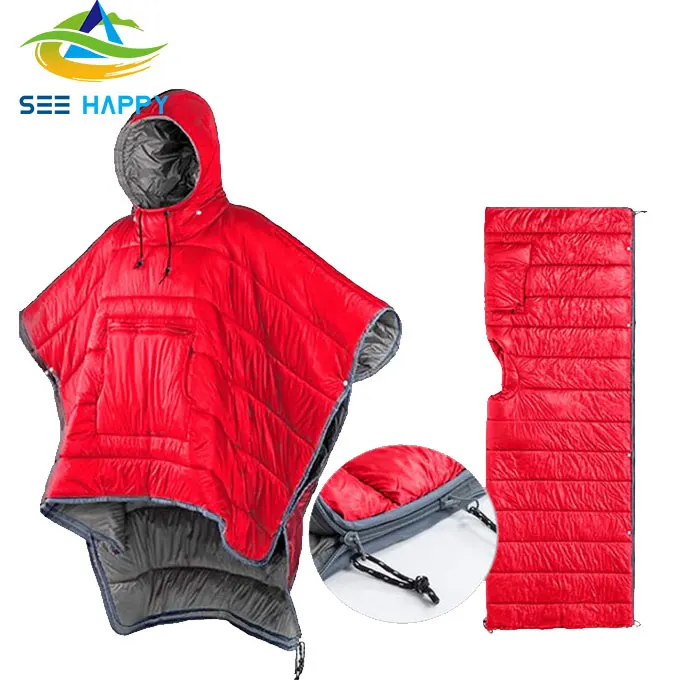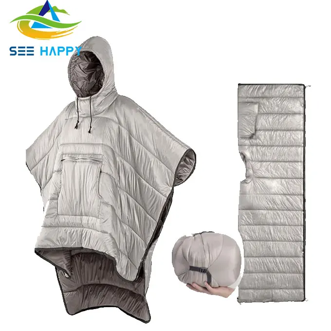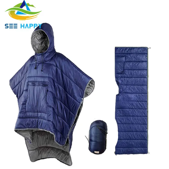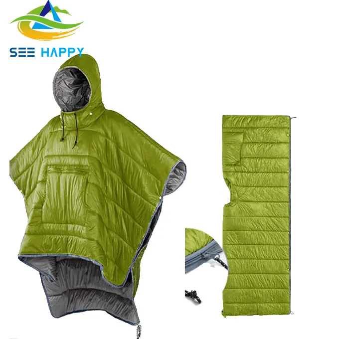 Hafif, suya dayanıklı naylon kumaştan yapılmış Panço Giyilebilir Battaniye, soğuk kış aylarında sizi daha sıcak tutmak için dolgu olarak içi boş pamuklu